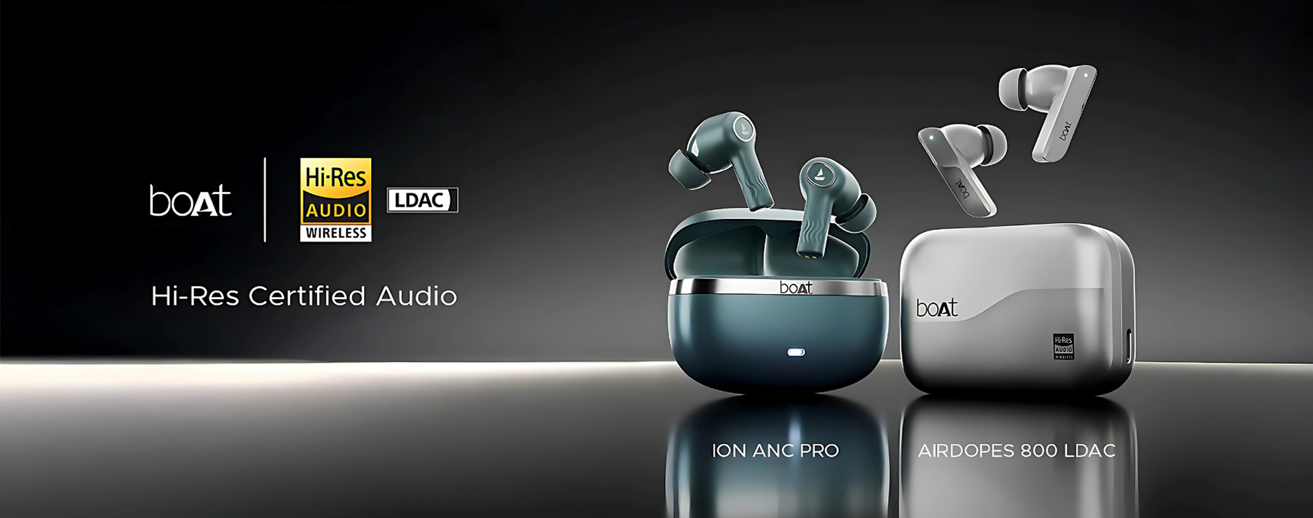 Regular price Rs. 2,149.00Regular priceUnit price / perRs. 13,990.00Sale price Rs. 2,149.00boAt Nirvana Ion ANC Pro Truly Wireless in Ear Ear Buds w/Hi-Res Audio w/LDAC, Upto 32 dB ANC, 120 Hrs Playback, Crystal Bionic Sound Powered by HiFi, ENx Tech, Hearables App(Blazing Comet)