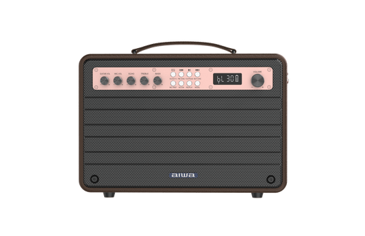 Aiwa Bluetooth Speaker | Long Battery Life | Built-in Microphone | karaoke speaker with 2 wireless microphones | MI-X450 Enigma 450 W Bluetooth Home Audio Speaker (Rose Gold, Black, 2.1 Channel)