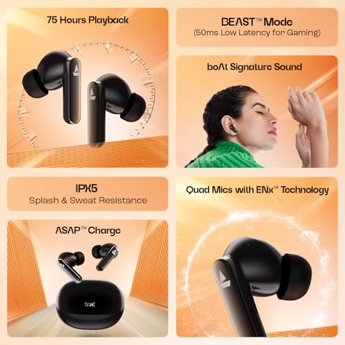 boAt Airdopes 181 Pro | Wireless Earbuds with 100 Hours Playback, Quad Mics with ENx™, BEAST™ Mode, ASAP™ Charge