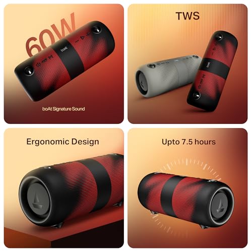 Boat 2025 Launch Stone 1200 Pro, 60W Boat Signature Sound, 76.2mm Drivers, TWS,7.5H Battery, Built-in Mic, Carry Strap,IPX6, Bluetooth Speaker, Wireless Speaker, Portable Speaker (Twilight Black)