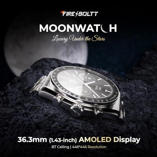 Fire-Boltt Moonwatch 36.3mm (1.43 inch) AMOLED Display, Wireless Charging, Metallic Frame, Stainless Steel Luxury Straps, Complete Health Suite, Bluetooth Calling, Sports Modes