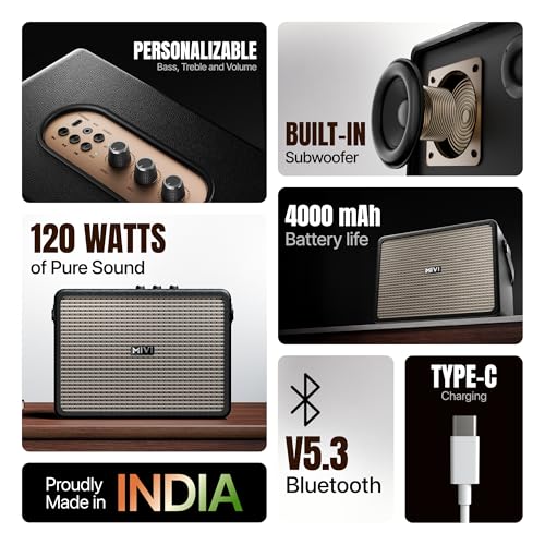 Mivi SuperBox Classic 120W Portable Bluetooth Speaker [New Launch] | Premium Sound with Built-in Subwoofer, Bass & Treble Control Knobs, AUX & USB Support | Made in India