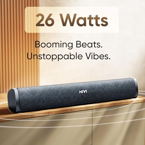 Mivi Fort R26/Q26 Soundbar [Newly Launched] with 26W Powerful Audio, 2.0 Channel with Dual Full-Range Speakers, Multiple Input Modes, 6H Playtime, 2500mAh Battery, Made in India Soundbar for TV