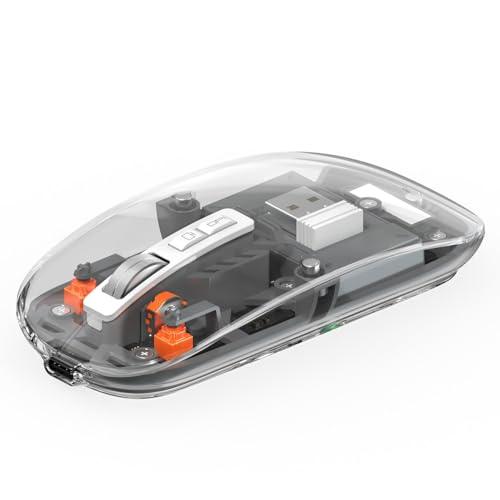 WIWU Tri-Mode Wireless Mouse USB C Rechargeable, Transparent Design, Silent Click USB Receiver & Type C Adapter - Ergonomic for Computer, Laptop - Stylish & Efficient (Crystal Grey) (Crystal Grey)