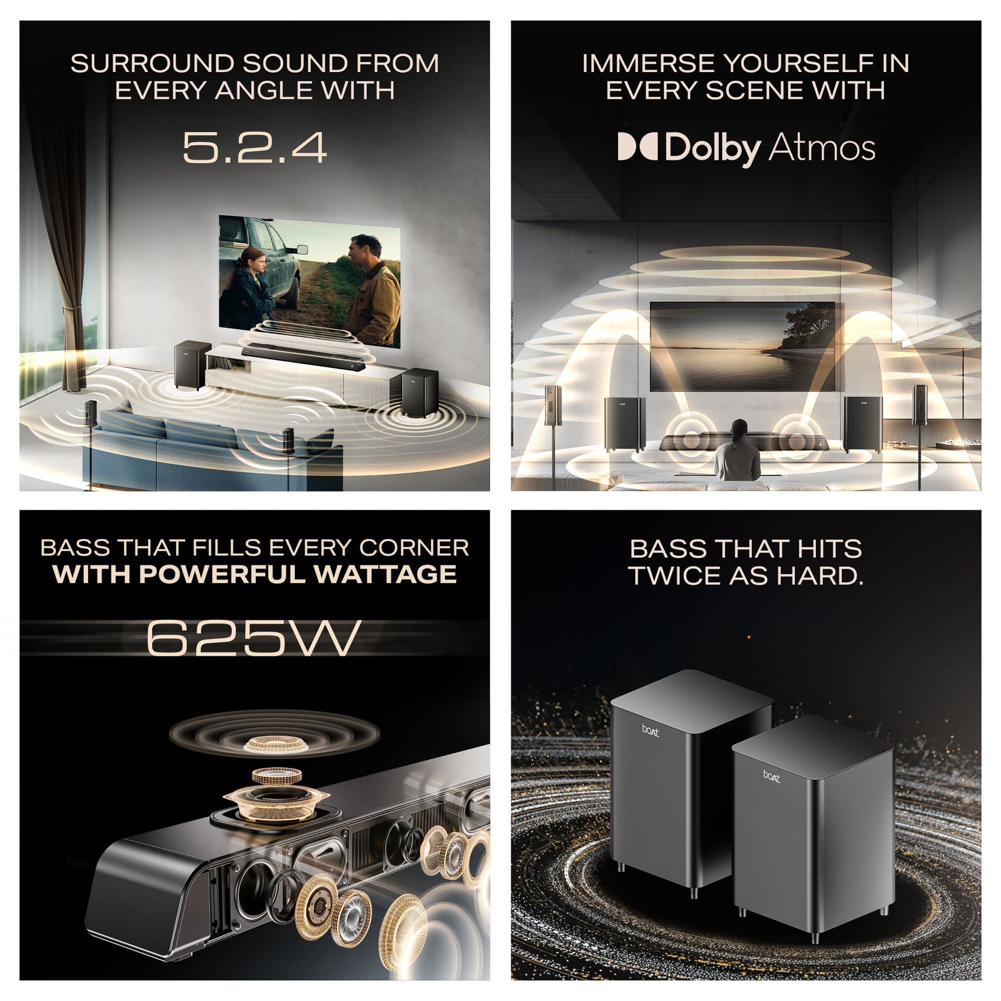 boAt Aavante Prime 5.2.4 6250DA | 625W 5.2.4 Channel Soundbar with Dolby Atmos, Dual Subwoofers & Wireless Rear Satellites