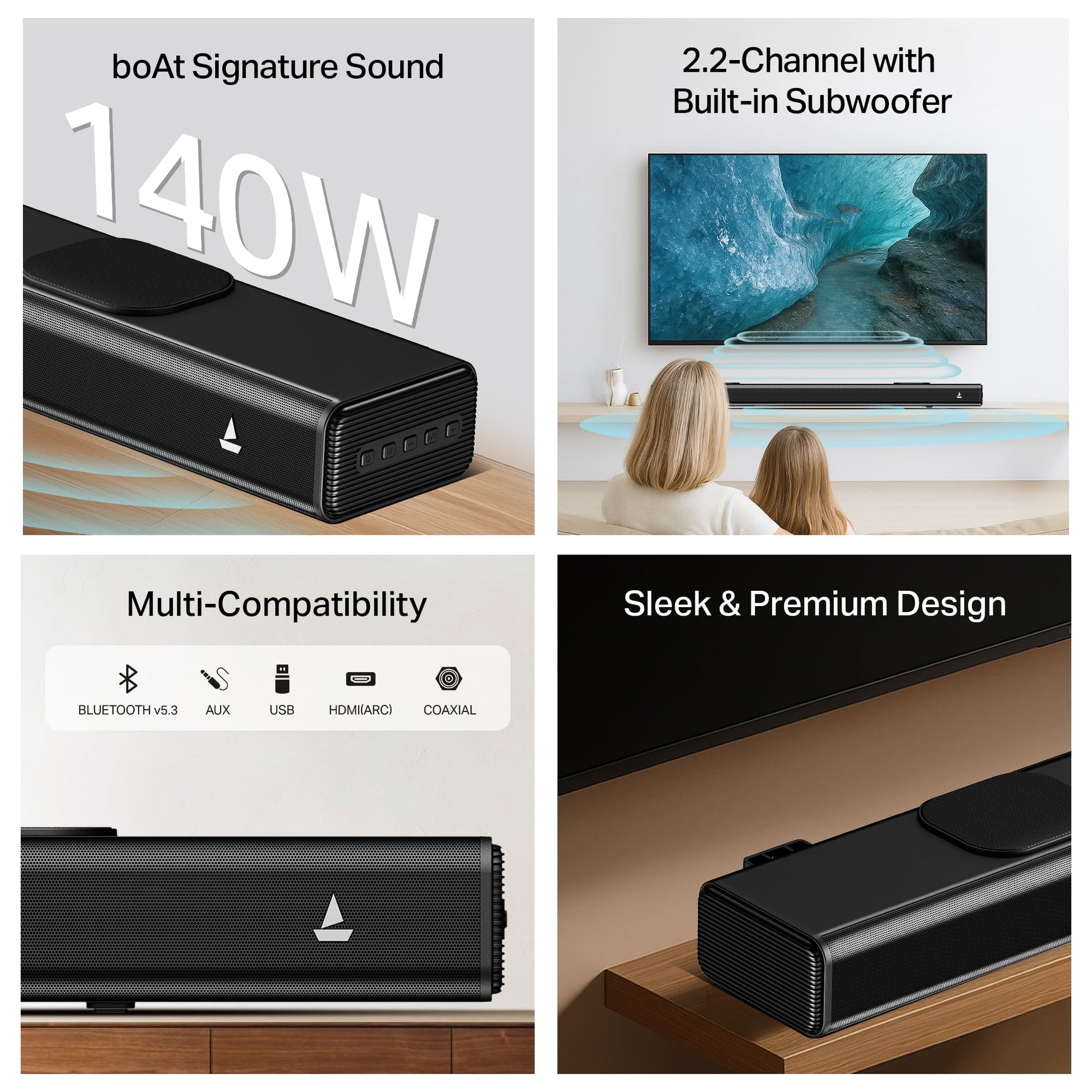 boAt Aavante Raga Plus | 140W 2.2 Channel Soundbar with Built-in Subwoofer & Multi-Connectivity