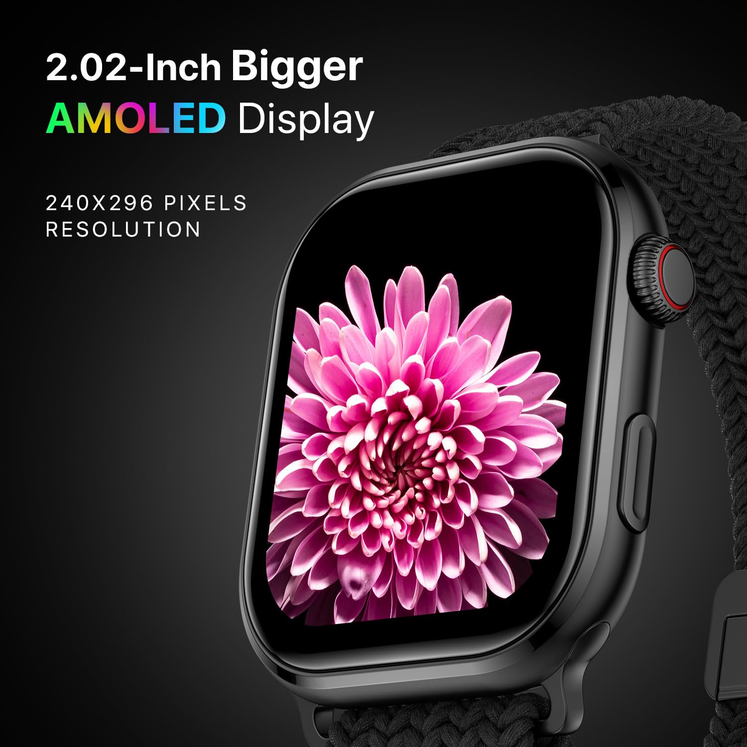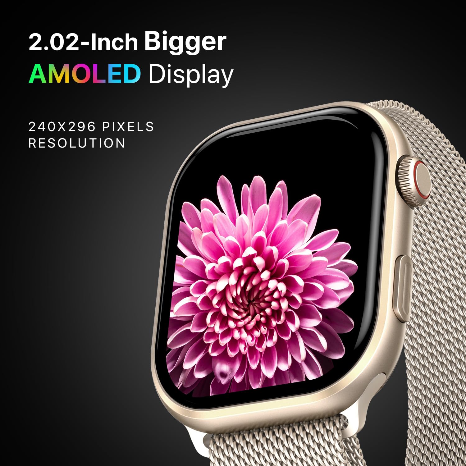 - (2.02") 51.3mm AMOLED Display with 750NITS Brightness: Experience vivid and clear visuals on the large 51.3mm always-on AMOLED display with a sharp 240x296 resolution and 750NITS brightness for enhanced clarity under any lighting.